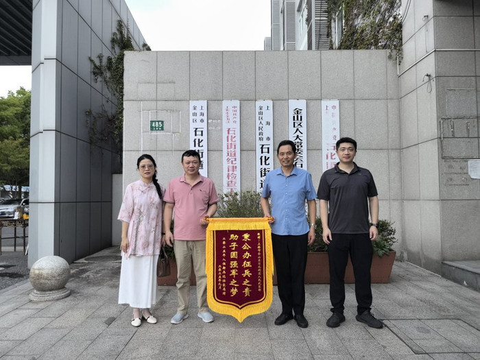“感谢街道一直以来的鼓励,孩子终于圆梦了!”近日,一面印着“秉公办征兵之责,助子圆强军之梦”的锦旗送到了金山石化街道征兵办公室,送旗的是新兵小沈的父母,在经历四次报名未果后,终于在今年成功穿上军装,成为一名光荣的解放军战士。